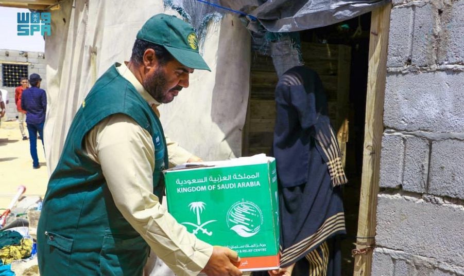 مركز الملك سلمان للإغاثة يدشن توزيع مساعدات غذائية للنازحين ومتضرري السيول في المهرة