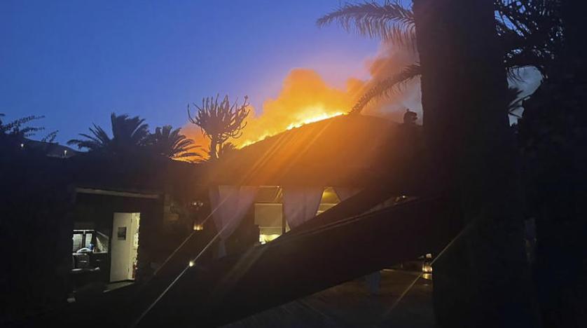 تُظهر لقطات فيديو ألسنة اللهب البرتقالية الساخنة وهي تتصاعد على جانب تلال الجزيرة.
