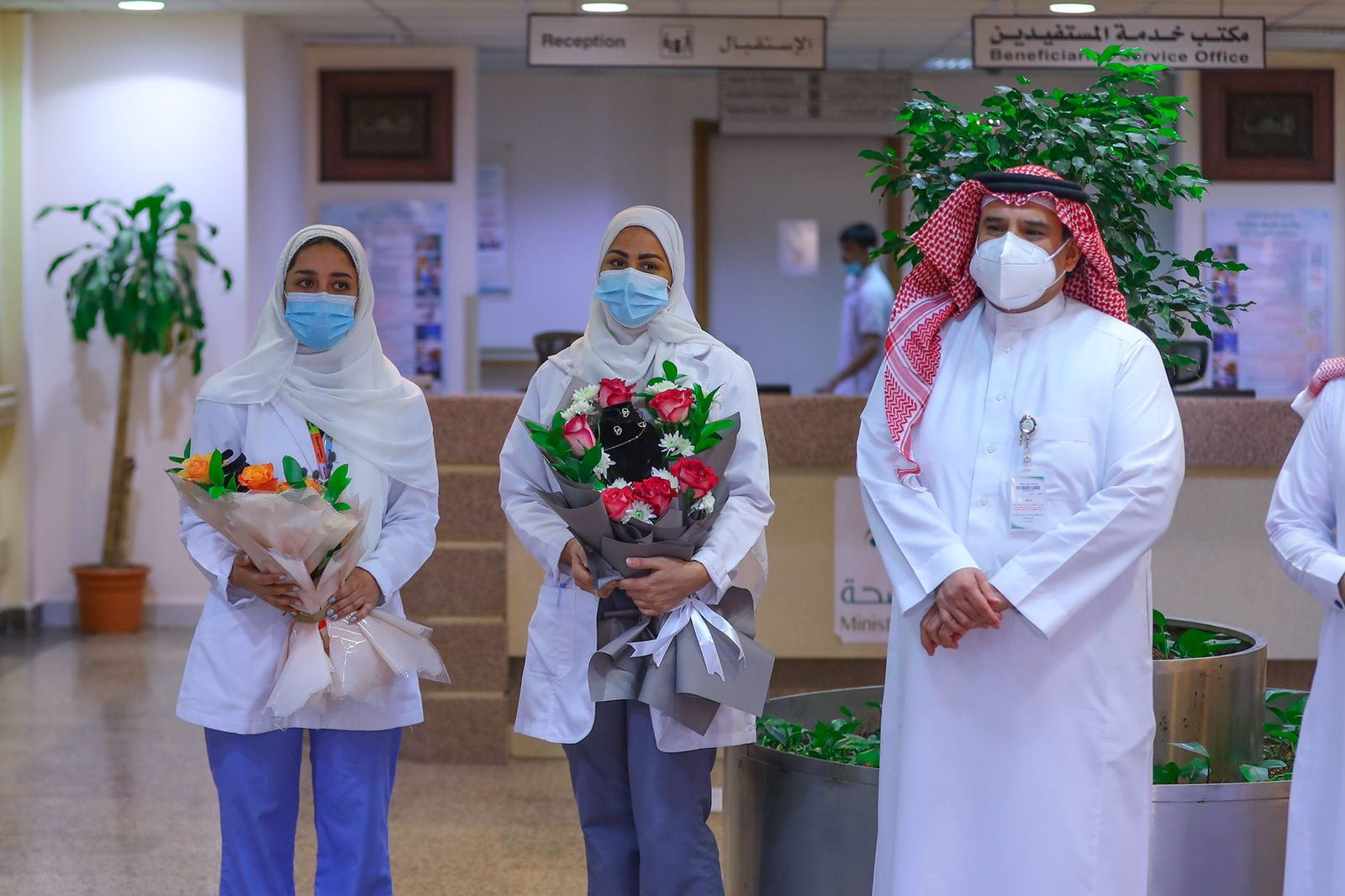 يذكر ان إدارة المستشفى اقامت حفل تكريم للأخصائيتين وتقديم مجموعة من الهدايا لهن شاركها في ذلك مجمع الميدان الأزرق الطبي ومجمع الصحة والسلامة الطبي وشركة وتد الشرقية وفندق دلفينيوم ومحل مجدولين للشوكولا البلجيكية ومقهى كوفي هابي ومحل التميز الماسي للتحف والهدايا.