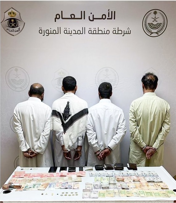 قبضت شرطة منطقة المدينة المنورة، على 4 مقيمين من الجنسية الباكستانية، لارتكابهم حوادث نشل، وضبط بحوزتهم مبالغ مالية، وجرى إيقافهم واتخاذ الإجراءات النظامية بحقهم، وإحالتهم إلى النيابة العامة.