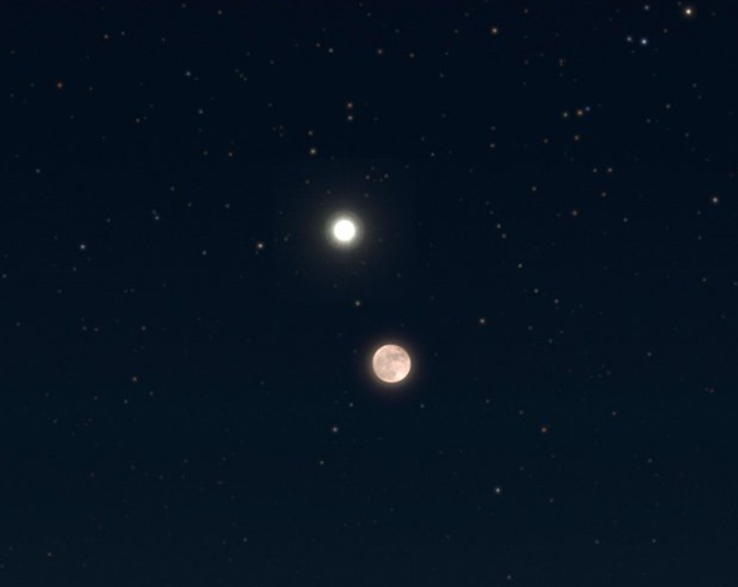 في ظاهرة فلكية نادرة تشهدها المملكة والوطن العربي، مساء اليوم الأحد اقتران القمر الأحدب المتناقص بكوكب المشتري، عملاق نظامنا الشمسي، معظم الليل.
