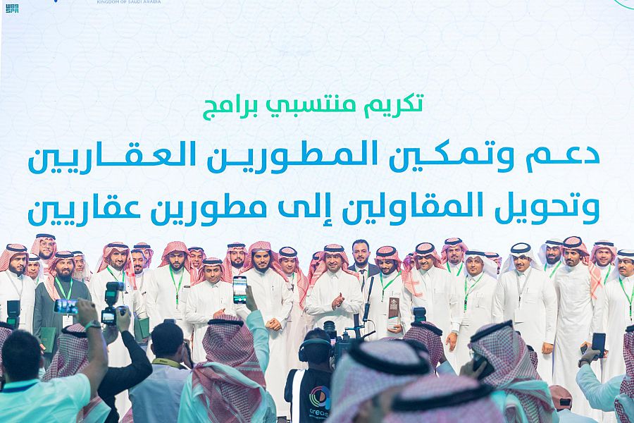وكرَّم معاليه خلال الحفل الذي أُقيم اليوم بالرياض، 46 مطوراً عقارياً، من بينهم 15 مطوراً جديداً انتقلوا من مجال المقاولات إلى مجال التطوير العقاري، و31 مطوراً خاضوا رحلة الدعم والتمكين، كما أطلق معاليه “منصة الأداة الرقمية” الهادفة إلى تهيئة بيئة إلكترونية مبتكرة تسهم في الارتقاء بالقطاع العقاري، إضافة إلى رعايته توقيع عدد من الاتفاقيات بين الوزارة وجهات من القطاعين العام والخاص.