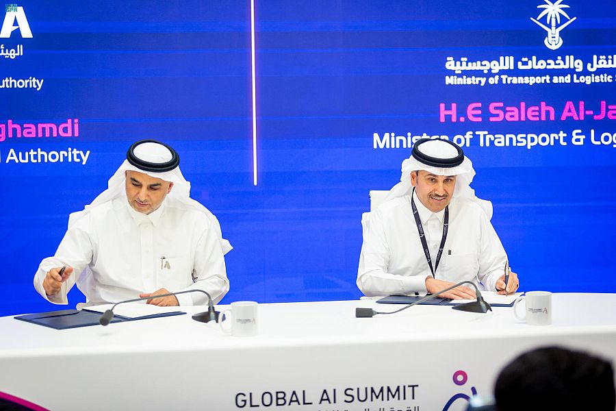 وَقَّعَ معالي وزير النقل والخدمات اللوجستية المهندس صالح بن ناصر الجاسر ومعالي رئيس الهيئة السعودية للبيانات والذكاء الاصطناعي (سدايا) الدكتور عبدالله بن شرف الغامدي مذكرة تفاهم، للتعاون في مجال التحليلات المتقدمة وتطبيقات الذكاء الاصطناعي في قطاع النقل و الخدمات اللوجستية.