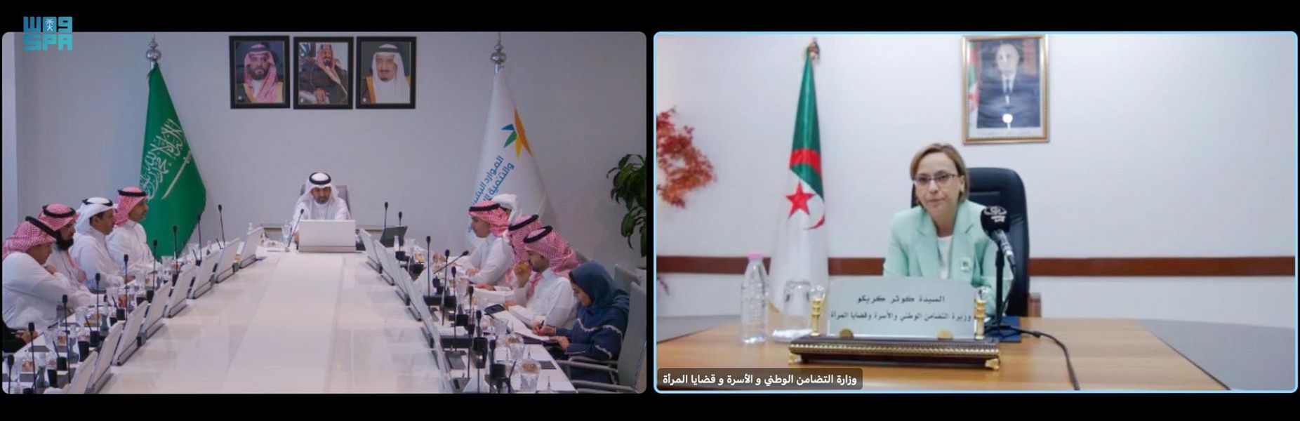 التقى معالي وزير الموارد البشرية والتنمية الاجتماعية المهندس أحمد بن سليمان الراجحي, اليوم, عبر الاتصال المرئي، بمعالي وزيرة التضامن الوطني والأسرة وقضايا المرأة بالجمهورية الجزائرية الديمقراطية الشعبية كوثر كريكو.
