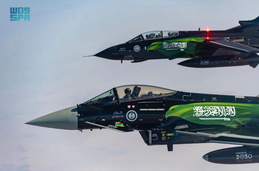 وتنفذ القوات الجوية الملكية السعودية عروضًا جوية بطائرات «تايفون»، و «ف – 15 إس»، و «تورنيدو»، و «ف – 15 سي» في 14 مدينة، هي: الرياض، جدة، الدمام، الجبيل، الأحساء، الطائف، الباحة، بلجرشي، تبوك، أبها خميس مشيط، الخبر، حفر الباطن، والجوف».