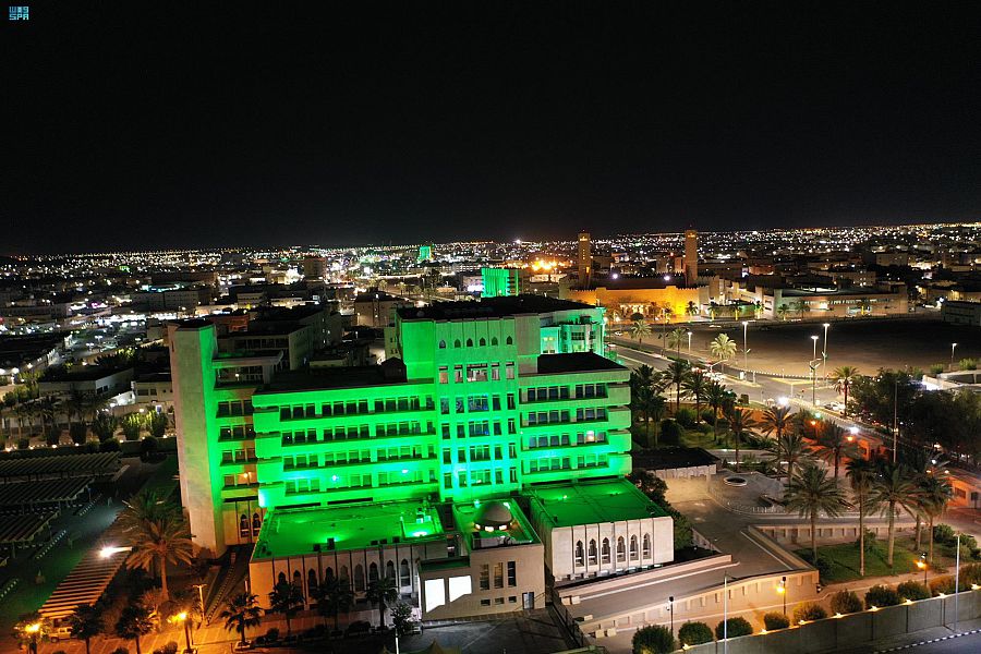 مباني إمارات المناطق تكتسي اللون الأخضر ابتهاجًا باليوم الوطني الـ (92)