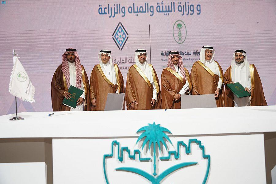 ورعى معالي وزير الشؤون البلدية والقروية والإسكان الأستاذ ماجد بن عبدالله الحقيل -بحضور معالي وزير السياحة الأستاذ أحمد بن عقيل الخطيب، ومعالي وزير البيئة والمياه والزراعة المهندس عبدالرحمن بن عبدالمحسن الفضلي، ومعالي وزير النقل والخدمات اللوجستية المهندس صالح بن ناصر الجاسر خلال حفل الافتتاح- توقيع عدد من الاتفاقيات أبرزها اتفاقية بين وزارة الشؤون البلدية والقروية والإسكان والشركة الوطنية للإسكان بقيمة استثمارية تتجاوز 40 مليار ريال لتمويل وتطوير محفظة مشاريع مشتركة، كما رعى توقيع اتفاقية ثنائية بين وزارة الشؤون البلدية والقروية والإسكان وصندوق تنمية الموارد البشرية “هدف” لتدريب وتوظيف أكثر من 20 ألف موظف سعودي على رأس العمل في مسار الرقابة المجتمعية، واتفاقية بين وزارة البيئة والمياه والزراعة والهيئة العامة للعقار لتطوير التعاون في الأنشطة البيئية والمائية والزراعية، وكذلك اتفاقية بين وزارة الشؤون البلدية والقروية والإسكان ومؤسسة صندوق موظفي شركة سابك الخيرية لتحفيز المسؤولية الاجتماعية للتنمية المستدامة، إضافة إلى اتفاقية بقيمة استثمارية تبلغ 3 مليارات ريال بين العربي للاستثمار وشركة أجدان لإنشاء صندوق استثماري عقاري مشترك، كما شهد الحفل تكريم الجهات الراعية للمعرض.