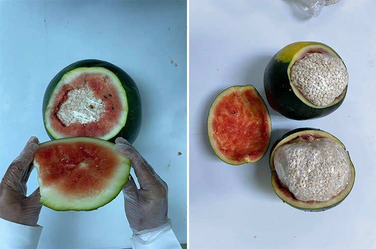 صرح المتحدث الرسمي للمديرية العامة لمكافحة المخدرات الرائد محمد النجيدي، بأن المتابعة الأمنية لشبكات تهريب وترويج المخدرات التي تستهدف أمن المملكة وشبابها، أسفرت عن ضبط (765) ألف قرص من مادة الإمفيتامين المخدر بمدينة الرياض، مخبأة داخل شحنة “بطيخ”، بحوزة (5) أشخاص، وهم (3) مقيمين من الجنسية السورية، ومواطنان، وجرى إيقاف المتهمين واتخاذ الإجراءات النظامية الأولية بحقهم وإحالتهم إلى النيابة العامة.