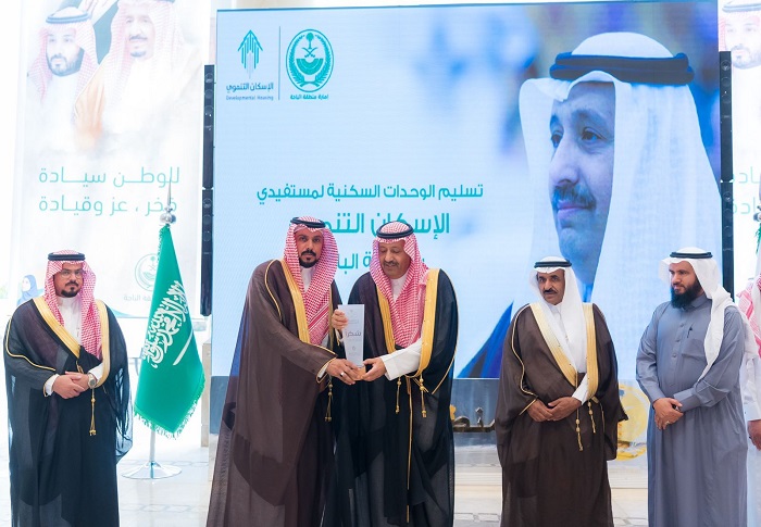 واستمع سموه خلال التسليم إلى شرح من مدير عام فرع شؤون الإسكان بالمنطقة عن الوحدات السكنية المُسلمة للمستفيدين والتي تتناسب مع احتياج الأسر المستفيدة، مبينًا أن آلية تسليم الوحدات يكون عن طريق الجمعيات الخيرية بالمنطقة التي سبق أن وقعت اتفاقيات شراكة مع الإسكان التنموي.