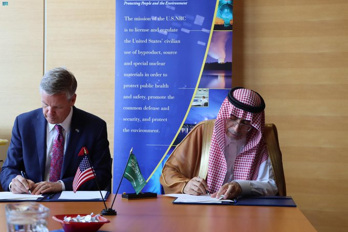 ووقع المذكرة من الجانب السعودي الرئيس التنفيذي لهيئة الرقابة النووية والإشعاعية الدكتور خالد بن عبدالعزيز العيسى، ومن الجانب الأمريكي رئيس مفوضية الرقابة النووية الأمريكية كريستوفر هانسن، حيث تركزت على مجالات التعاون في التنظيم والرقابة على أمن وأمان المنشآت النووية والمواد المشعة وتنفيذ الضمانات والتأثير البيئي للمرافق النووية والمواد المشعة وبرامج بحوث الأمان النووي.