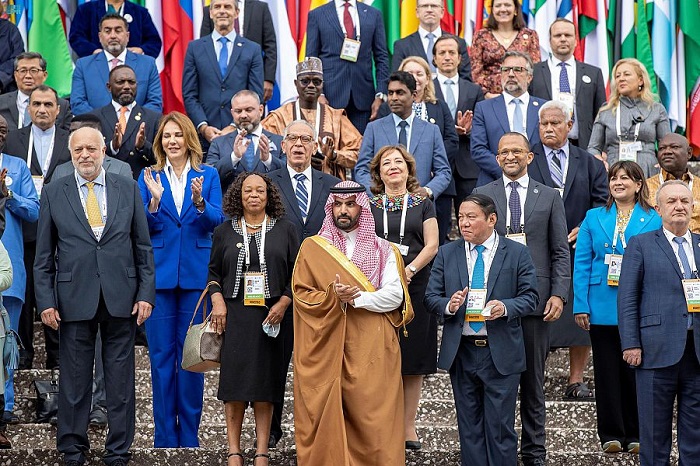 رأس صاحب السمو الأمير بدر بن عبدالله بن فرحان وزير الثقافة، وفد المملكة العربية السعودية المشارك في مؤتمر اليونسكو العالمي للسياسات الثقافية والتنمية المستدامة (موندياكلت 2022)، الذي انطلق في مدينة مكسيكو سيتي عاصمة الولايات المتحدة المكسيكية، ويستمر حتى يوم الجمعة 30 سبتمبر 2022م.
