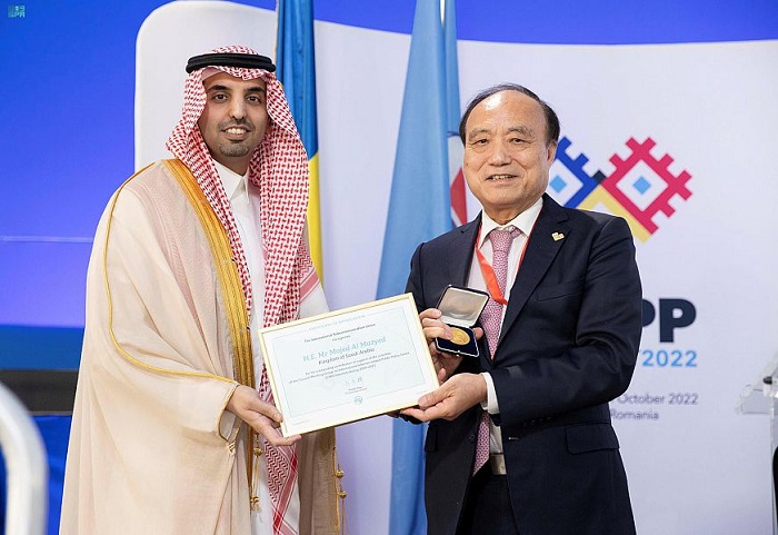 كرّم الاتحاد الدولي للاتصالات “ITU”، المملكة العربية السعودية ممثلةً بمعالي محافظ الهيئة الوطنية للأمن السيبراني المهندس ماجد بن محمد المزيد، بمنحه الميدالية الذهبية، تقديراً للجهود التي قامت بها المملكة خلال فترة ترؤسها فريق عمل مجلس الاتحاد الدولي للاتصالات، وذلك في مؤتمر المندوبين المفوضين للاتحاد المنعقد حالياً في العاصمة الرومانية بوخارست.