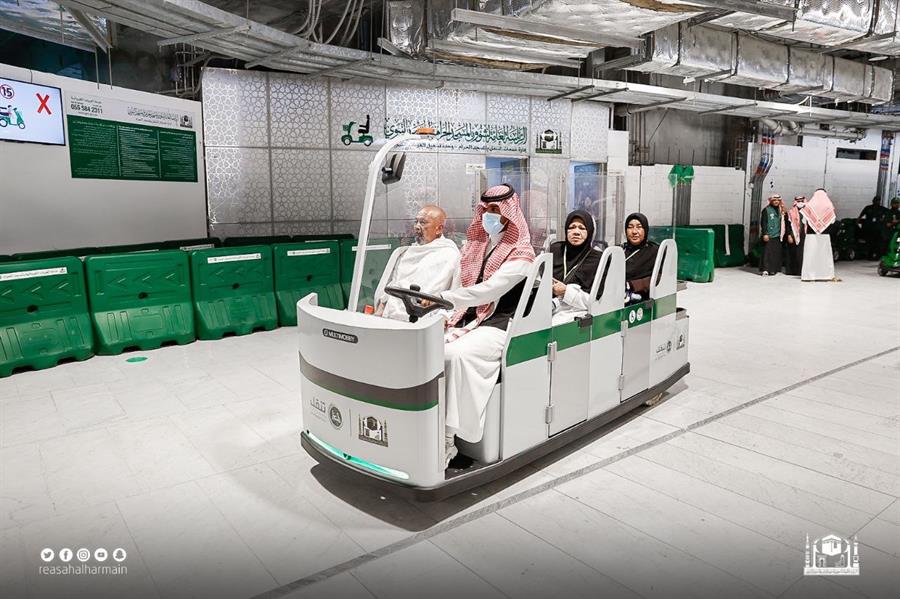 كشفت الرئاسة العامة لشؤون المسجد الحرام والمسجد النبوي ممثلة في وكالة الخدمات وتحقيق الوقاية البيئية، عن استحداث قاطرة كهربائية لنقل كبار السن والأشخاص ذوي الإعاقة، خلال أداء الطواف والسعي بالمسجد الحرام.