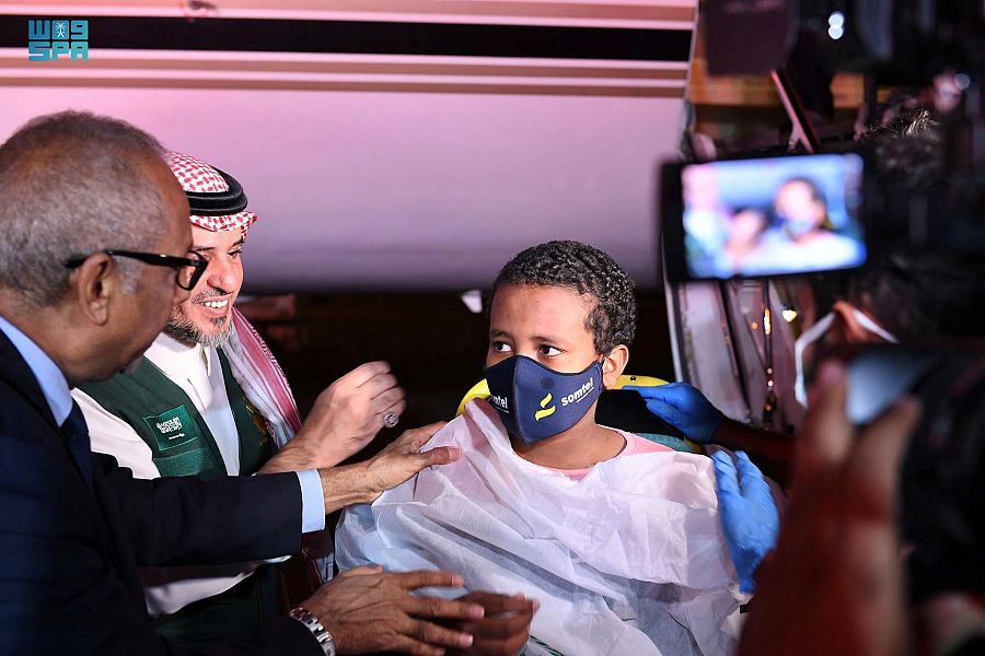 إنفاذًا لتوجيهات خادمِ الحرمين الشريفين الملكِ سلمانَ بنِ عبدالعزيز آل سعود – حفظه الله- بعلاج عدد من الجرحى الصوماليين الذين أصيبوا نتيجة التفجير الإرهابي الذي استهدف مؤخراً فندقاً في العاصمة الصومالية مقديشو، فقد وصلت اليوم إلى مطار الملك خالد الدولي بالرياض طائرة تنقل 6 مصابين صوماليين؛ لتلقي العلاج في مستشفيات المملكة.