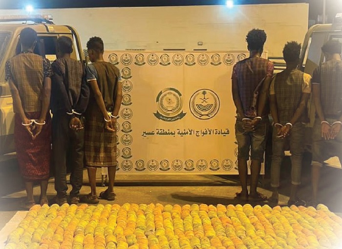 قبضت دوريات الأفواج الأمنية بمنطقة عسير على (6) مخالفين لنظام أمن الحدود من الجنسية الإثيوبية في محافظة سراة عبيدة، بحوزتهم (76) كيلو جرامًا من نبات القات المخدر، وتم إيقافهم واتخاذ الإجراءات النظامية بحقهم، وإحالتهم لجهة الاختصاص.