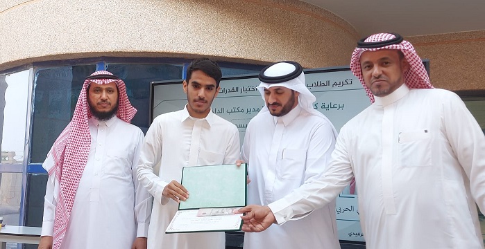 من جهته بارك الدكتور أحمد الخميسي للطلاب تفوقهم، وعبر عن سعادته بهذا التميز، وطالب بقية الطلاب بالتفوق، ووجه شكره وتقديره لكل من أسهم في هذا الإنحاز، وأكد بأن لدى المكتب فكرة تكريم جميع الطلاب الذين تفوقوا في اختبار القدرات في مدارسهم تشجيعًا لهم وتحفيزًا لبقية الطلاب.