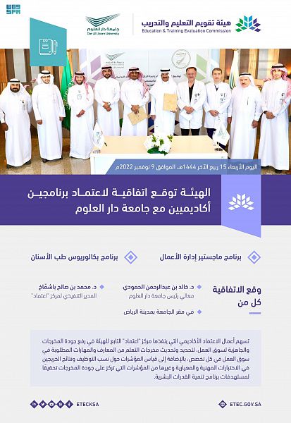 هيئة تقويم التعليم والتدريب توقع اتفاقيات لاعتماد برنامجين أكاديميين لجامعة دار العلوم