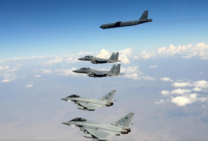 رافق عدد من طائرات القوات الجوية السعودية، القاذفة الاستراتيجية الأمريكية «بي -52» التابعة للقوات الجوية الأمريكية، أثناء عبورها أجواء المملكة.