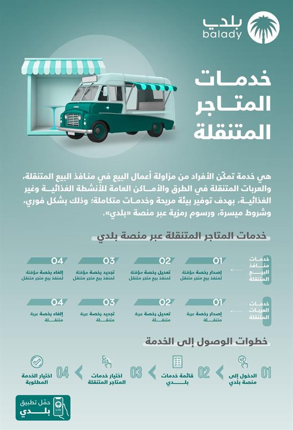 آخر الأخبار > خطوات الوصول إلى خدمات المتاجر المتنقلة عبر منصة “بلدي”