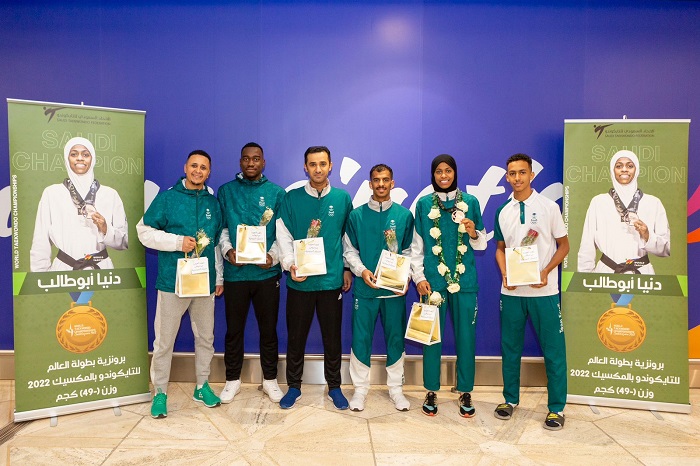 وكان في استقبال البعثة أعضاء الاتحاد السعودي للتايكوندو، وعددٌ من لاعبي ومحبي التايكوندو، من جانبه قال المدير التنفيذي للاتحاد الأستاذ محمد الشهري: “نحمد الله على المكتسبات التي تحققت وكان آخرها البرونزية العالمية، وهذا تأكيد على نجاح الاستراتيجية التي يرسمها المسؤولين بالاتحاد بقيادة العميد شداد العمري، ولاشك أن الدعم الذي نجده من وزارة الرياضة واللجنة الأولمبية ساهم في القفزات التي تحققت في جميع الفئات والقادم بإذن الله أجمل” .