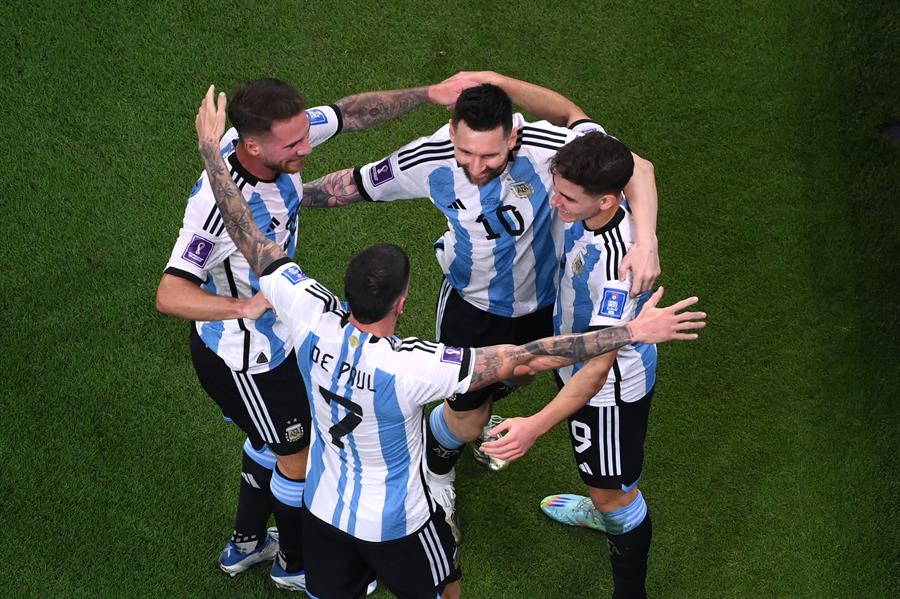 “إيميليانو مارتينيز- ماركوس أكونيا – نيكولاس أوتامندي – كريستيان روميرو – ناهويل مولينا- أليكسيس ماك أليستر – إنزو فيرنانديز – رودريجو دي بول- ألفاريز – ليونيل ميسي – أليخاندرو جوميز”.