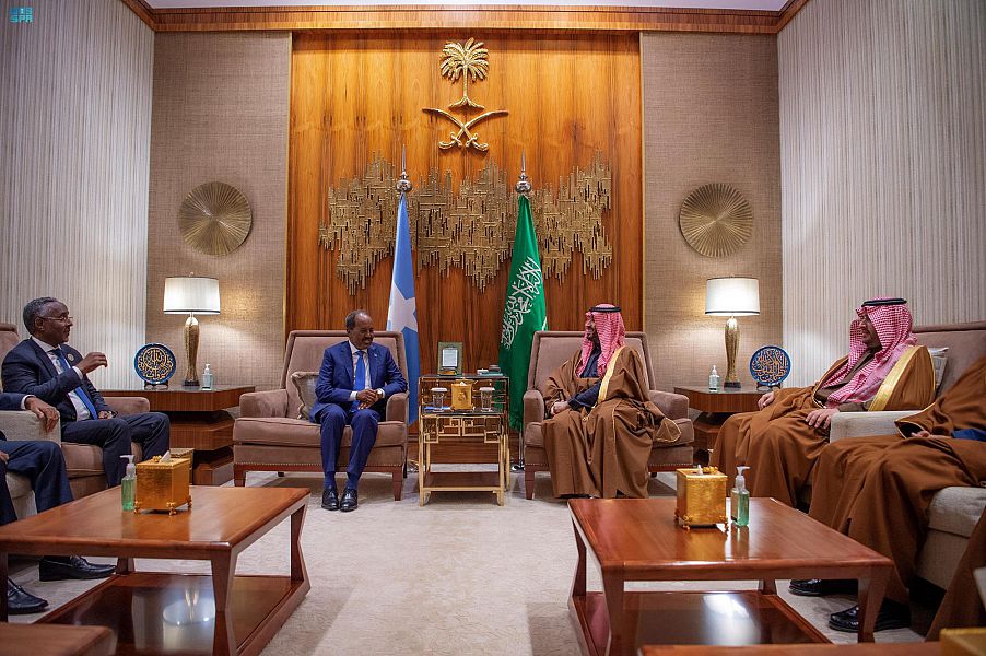 ولي العهد يستقبل رئيس الصومال .. ويستعرضان أوجه العلاقات الثنائية بين البلدين