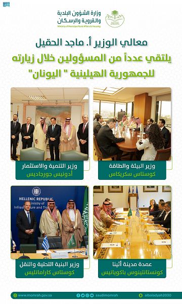 “الحقيل” يلتقي عدداً من الوزراء اليونانيين وعمدة أثينا ووفداً من شركة متخصصة في البناء والبِنية التحتية