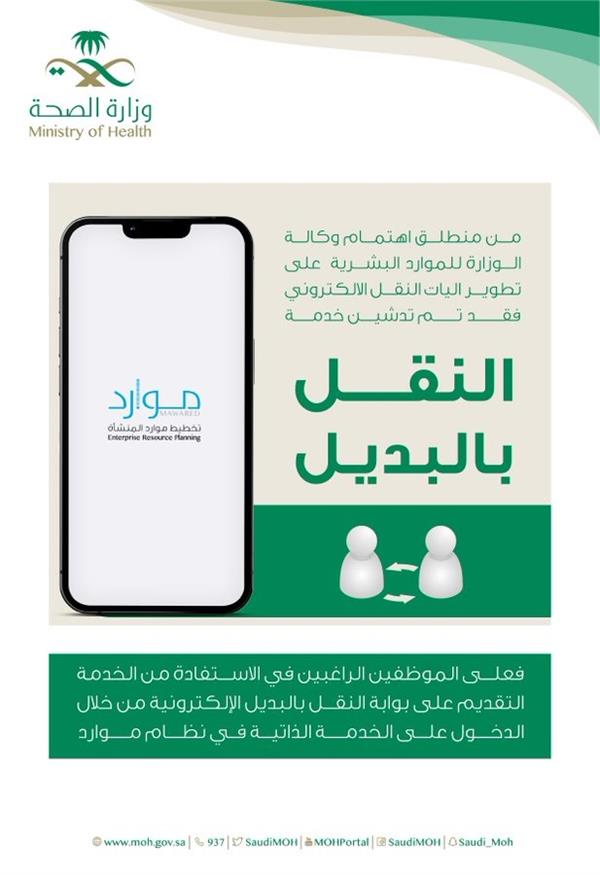 ودعت الوزارة الموظفين الراغبين في الاستفادة من الخدمة التقديم على بوابة النقل بالبديل الإلكترونية من خلال الدخول على الخدمة الذاتية في نظام موارد.