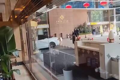 اقتحمت سيارة واجهة أحد الفنادق الفاخرة بمدينة شنجهاي الصينية، على خلفية خلافات بين سائقها وإدارة الفندق.