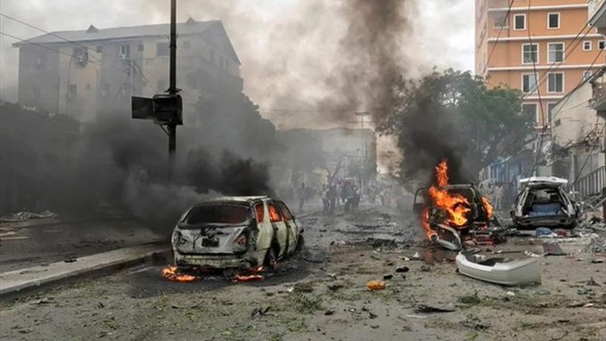 قالت الشرطة الصومالية، إن انفجاراً هائلاً دمر مباني قريبة من مقر بلدية مقديشو، تلاه إطلاق نار في هجوم تبنته حركة الشباب.