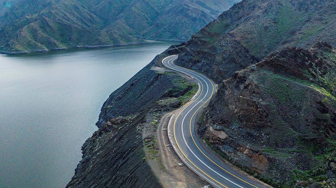 ويتناغم مع جنبات السد الطريق الممتد من المعقص جنوب نمرة إلى الفائجة والمرجيات والمريبي، ثم ينطلق عبر وادي قنونا بطول 32 كيلو متراً تقريباً إلى موقع السد الواقع بين جبلين كما تأتي تسميتهما بـ “الحازمين” ، حيث روعي في تصميم الطريق أن يكون شكلاً هندسياً يتيح لمرتاديه فرصة الاطلاع والتمتع بالمناظر الخلابة التي يتميز بها طول وادي قنونا وصولاً للسد ليكشف روعة الطبيعة الخلابة.