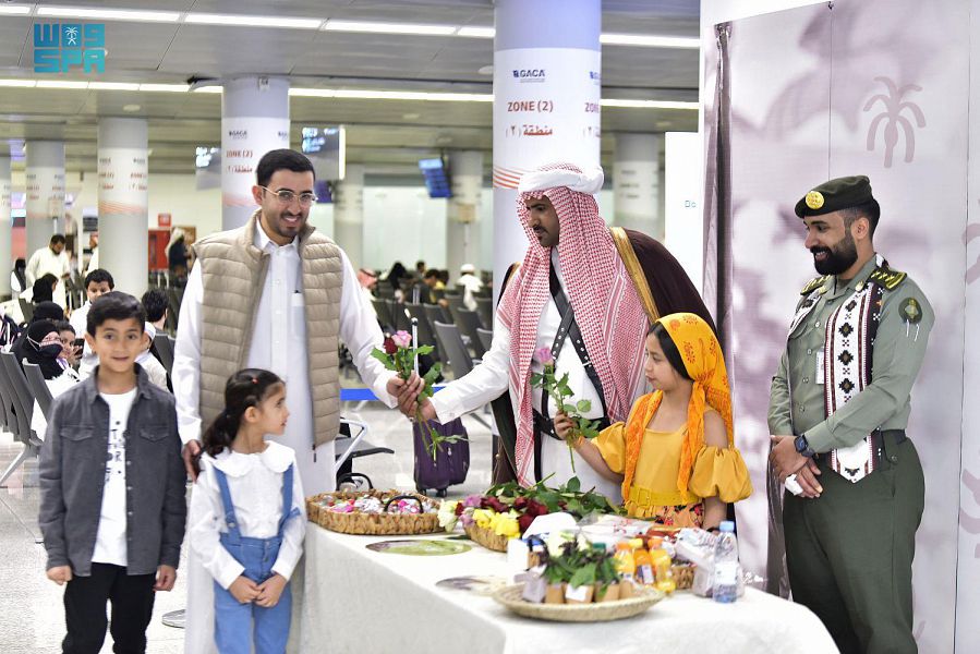 احتفلت المديرية العامة للجوازات بمناسبة يوم التأسيس عبر إدارات الجوازات بالمنافذ الدولية في كافة مناطق المملكة، من خلال استقبال المسافرين بكل حفاوة وترحاب وتقديم الورود والهدايا التذكارية لهم بهذه المناسبة.