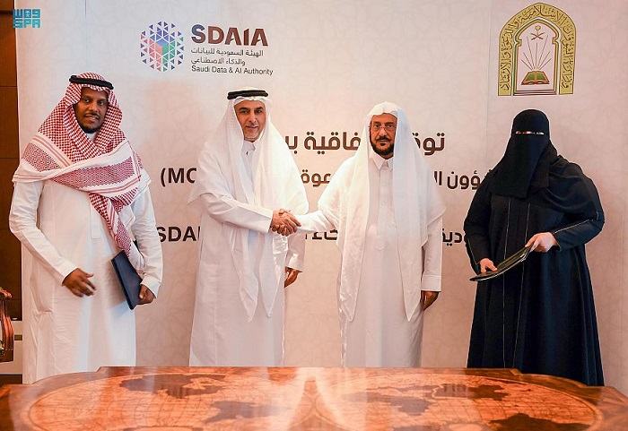 وقعت وزارة الشؤون الإسلامية والدعوة والإرشاد في الرياض اليوم ، مذكرة تفاهم الهيئة السعودية للبيانات والذكاء الاصطناعي “سدايا” , بحضور معالي وزير الشؤون الإسلامية الشيخ الدكتور عبداللطيف بن عبدالعزيز آل الشيخ، ومعالي رئيس هيئة “سدايا” الدكتور عبدالله بن شرف الغامدي.