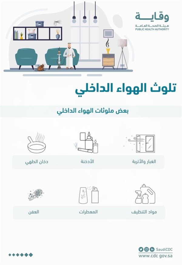 حددت هيئة الصحة العامة “وقاية”، قائمة بمصادر تلوث الهواء الداخلي التي تؤثر سلباً على صحة المتواجدين داخل المنزل.
