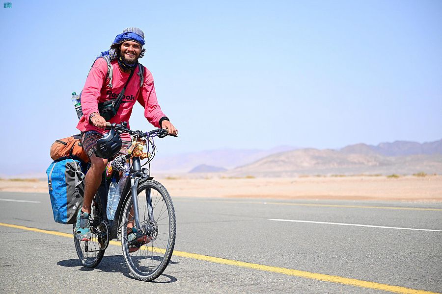 بعد رحلته التي استمرت 6 أشهر، وصل الرحالة الألماني جان روسي، البالغ من العمر 29 عاماً، أراضي المملكة ليتعرف على أهم وأبرز معالمها السياحية وثقافة المجتمع فيها، على متن دراجته الهوائية.