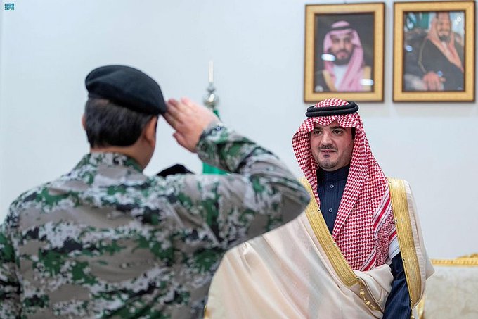 تابع الأمير عبدالعزيز بن سعود بن نايف بن عبدالعزيز وزير الداخلية، اليوم، سير العمل في منفذ جديدة عرعر الحدودي بمنطقة الحدود الشمالية، يرافقه الأمير فيصل بن خالد بن سلطان بن عبدالعزيز أمير منطقة الحدود الشمالية، والأمير سعود بن عبدالرحمن بن ناصر بن عبدالعزيز نائب أمير منطقة الحدود الشمالية.