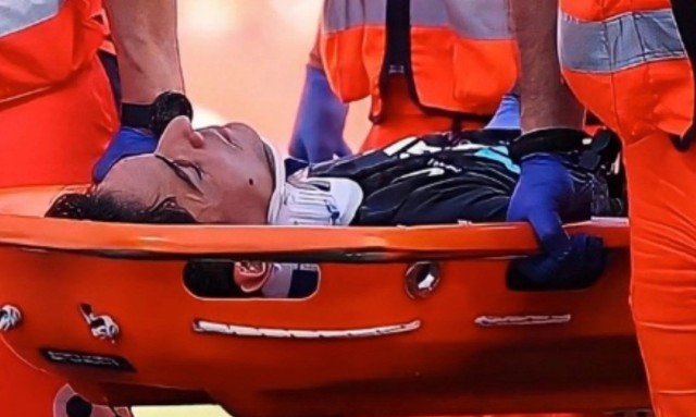 ووضع الأطباء دعامة لرقبة الحارس البالغ عمره 31 عاما، ونُقل إلى المستشفى للخضوع لفحوصات كإجراء احترازي.