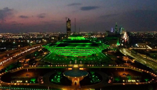 اكتست مباني وزارة الداخلية وقطاعاتها الأمنية وإمارات المناطق في جميع مناطق المملكة اللون الأخضر احتفالاً بمناسبة يوم العلم.