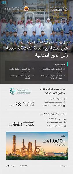 آخر الأخبار > وزير الصناعة والثروة المعدنية يتفقَّد البنية التحتية في “مدينة رأس الخير الصناعية” التي تضم مشاريع صناعات معدنية قيمتها 82 مليار ريال