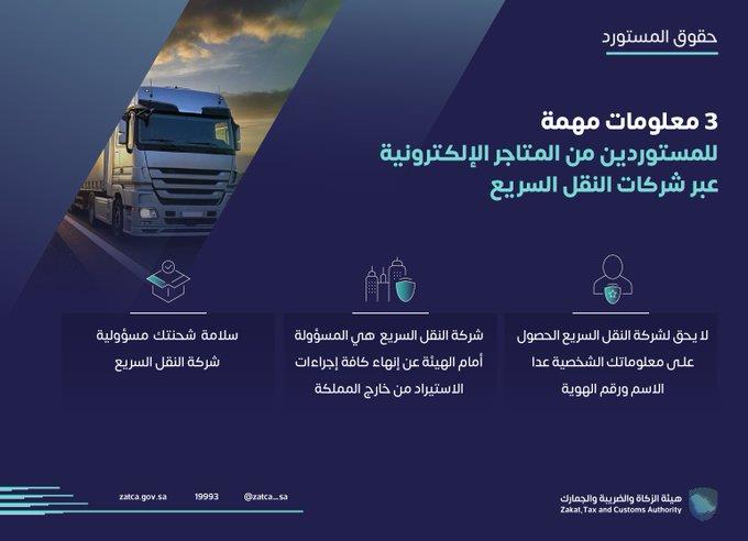 وأكدت الهيئة، أنه لا يحق لشركة النقل السريع الحصول على معلومات المستورد الشخصية عدا الاسم ورقم الهوية، إلى جانب تحملها مسؤولية سلامة الشحنة.