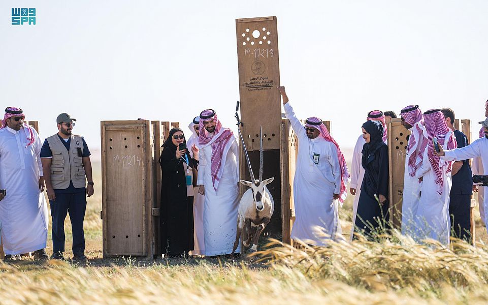 أطلقت هيئة تطوير محمية الإمام عبدالعزيز بن محمد الملكية والمركز الوطني لتنمية الحياة الفطرية الملكية اليوم، 30 ظبي ريم و10 من المها الوضيحي في محمية الملك خالد الملكية.