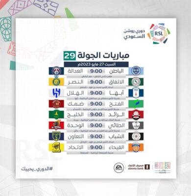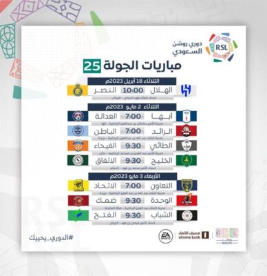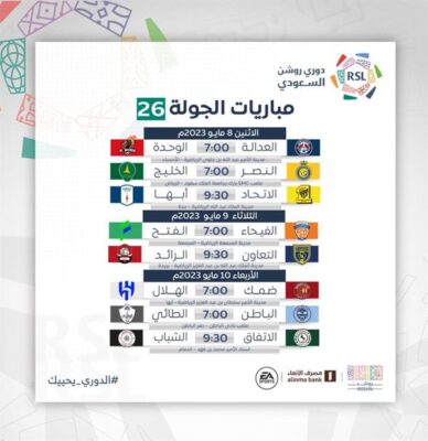 كما تم تعديل موعد بداية مباراة الوحدة والاتحاد في الجولة (23) بناءً على موافقة الناديين لتكون صافرة البداية عند الساعة 11 مساءً بدلًا من موعدها السابق الساعة 10 مساءً.