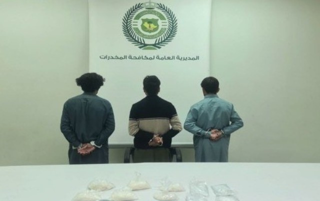 قبضت المديرية العامة لمكافحة المخدرات على (3) مقيمين من الجنسية الباكستانية بمنطقة الرياض، بحوزتهم (1.65) كيلو جراماً من مادة الميثامفيتامين المخدر (الشبو)، وجرى إيقافهم واتخاذ الإجراءات النظامية بحقهم، وإحالتهم إلى النيابة العامة.