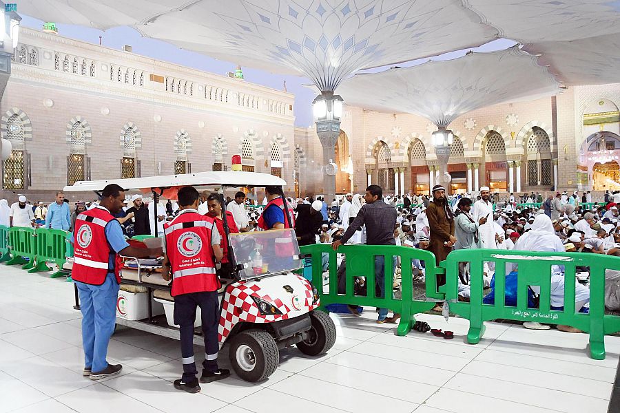 يواكب جموع المصلين في المسجد النبوي خدمات ميدانية في مختلف محاور الخدمات الصحية والأمنية والغذائية والإرشادية والتنظيمية للعناية بسلامتهم, وتوفير كل ما يحتاجونه لينعموا بالراحة والأمان.