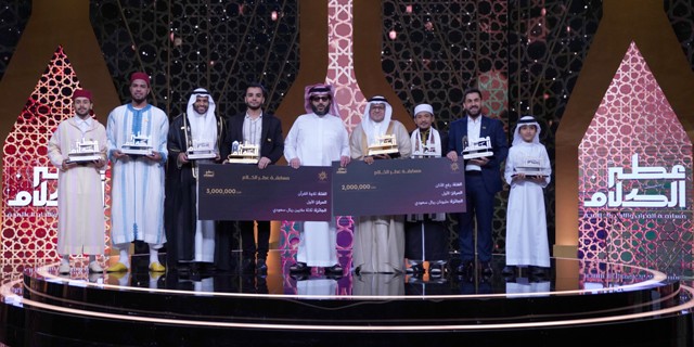 كرّم معالي المستشار تركي بن عبدالمحسن آل الشيخ رئيس مجلس إدارة الهيئة العامة للترفيه، في الحلقة الختامية لبرنامج عطر الكلام التي عُرضت اليوم، الفائزين العشرين بالجوائز المليونية، إذ فاز السعودي محمد آل الشريف بالمركز الأول في فئة الأذان بمبلغ مليوني ريال، والإيراني يونس شاهمرادي في فئة التلاوة بمبلغ 3 ملايين ريال.