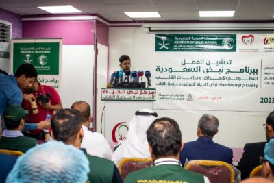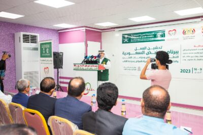 دشن مركز الملك سلمان للإغاثة والأعمال الإنسانية أمس برنامج نبض السعودية التطوعي الثاني لأمراض القلب المفتوح للأطفال والكبار بمدينة المكلا في محافظة حضرموت والذي يستمر خلال الفترة من 9 حتى 16 أبريل 2023م، بحضور معالي وزير الصحة العامة والسكان الدكتور قاسم محمد بحيبح ومحافظ محافظة حضرموت مبخوت مبارك بن ماضي، ومن جانب المركز مدير إدارة الموارد والاستثمار الدكتور سامر بن عبدالله الجطيلي.