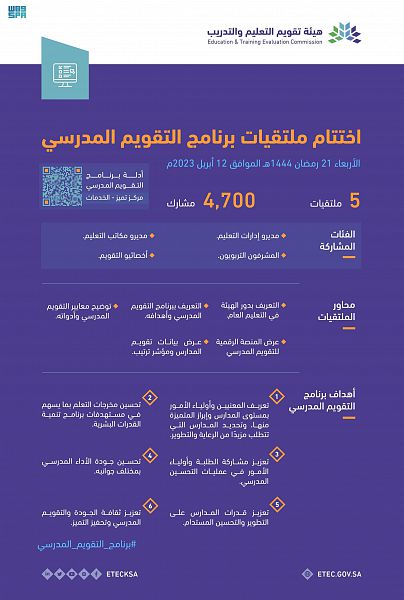 هيئة تقويم التعليم تختتمُ ملتقياتِ ” التقويم المدرسي ” بمشاركة 4700 من مديري ومنسوبي إدارات ومكاتب التعليم بالمملكة