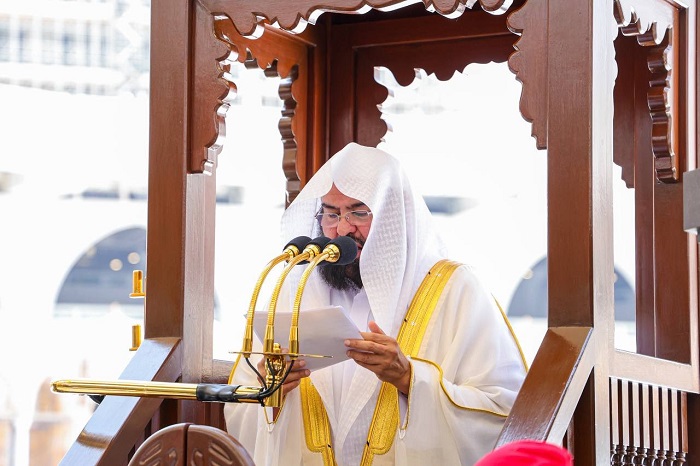 كما يشاد بما ننعم به في رحاب الحرمين الشريفين من الأمن والأمان والسلامة والاطمئنان وتوافر منظومة الخدمات كافة بفضل الله ثم ما توليه قيادة هذه البلاد المباركة للحرمين الشريفين وقاصديهما وضيوف الرحمن من المعتمرين والزائرين جعله الله في موازينها.