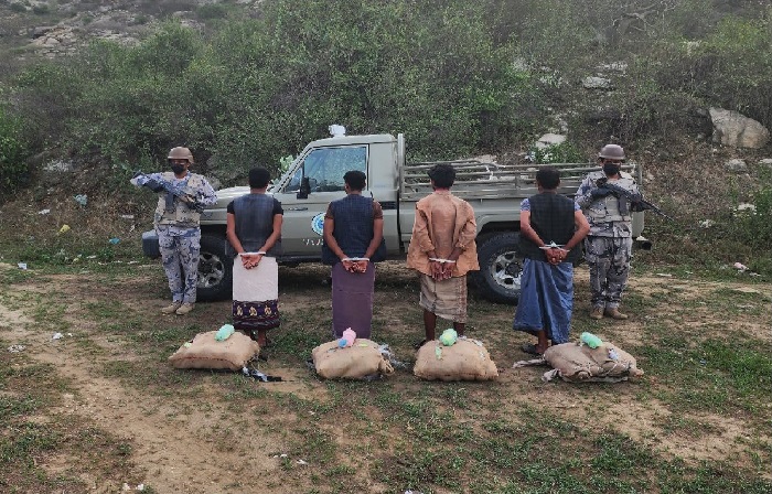 قبضت الدوريات البرية لحرس الحدود في قطاع العارضة بمنطقة جازان، على (4) مخالفين لنظام أمن الحدود من الجنسية اليمنية، لمحاولتهم تهريب نبات القات المخدر، وجرى استكمال الإجراءات النظامية الأولية بحقهم، وتسليمهم والمضبوطات لجهة الاختصاص.