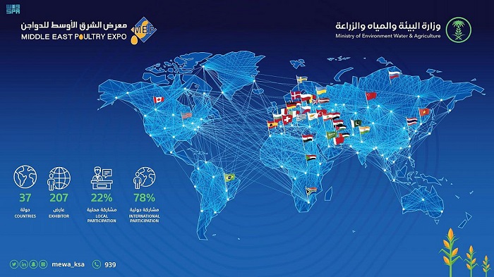 ويستقطب المعرض الذي يقام بمركز الرياض الدولي للمؤتمرات والمعارض بالعاصمة الرياض ويستمر على مدى ثلاثة أيام في نسخته الحالية أكثر من 200 شركة من 37 دولة حول العالم، بمشاركة نخبة من الشركات العالمية والخبراء في قطاع الدواجن والأعلاف وصحة الحيوان؛ بهدف تعزيز فرص الاستثمار في صناعة الدواجن وتوفير منصة تجارية مثالية تجمع المستثمرين المحليين بالموردين وبيوت الخبرة العالمية؛ لتطوير صناعة الدواجن تحقيقاً للاستراتيجية الوطنية للأمن الغذائي.